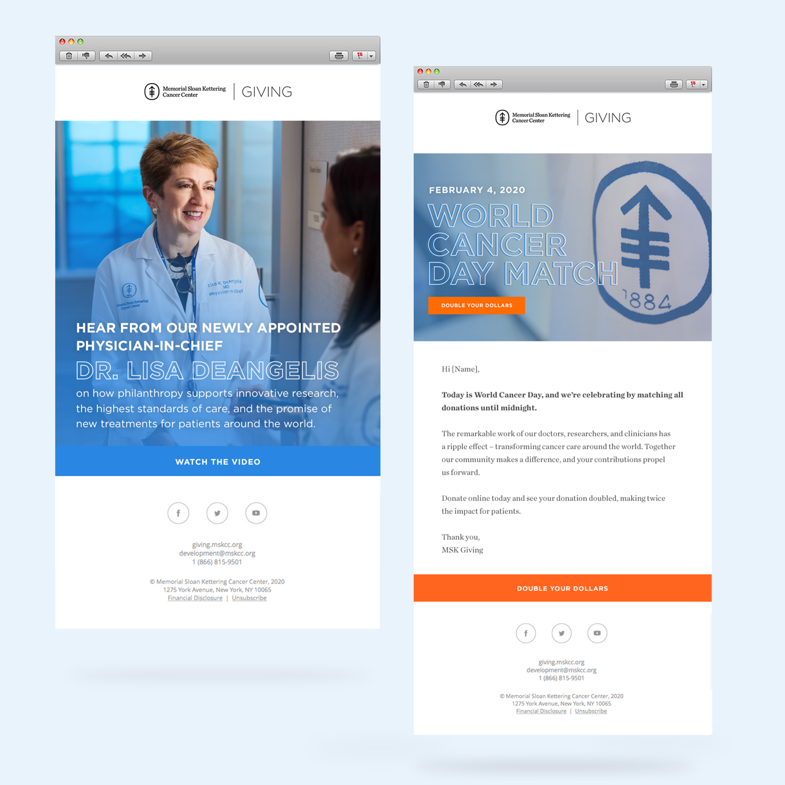 In my role at Memorial Sloan Kettering Cancer Center, I worked on the design and execution of fundraising campaigns across a range of digital channels. These campaigns typically included a mix of landing pages, responsive email communications, paid social ads, and banner ads.